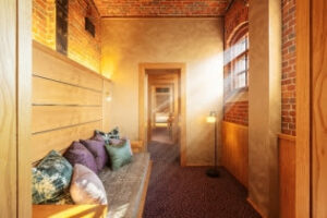 Eski koridorlar, hücre blokları ve idari binalar, her odanın gerçek bir sığınağa dönüştüğü 48 odalı “tamamı süitlerden oluşan bir otel” yaratmak üzere yeniden tasarlandı.